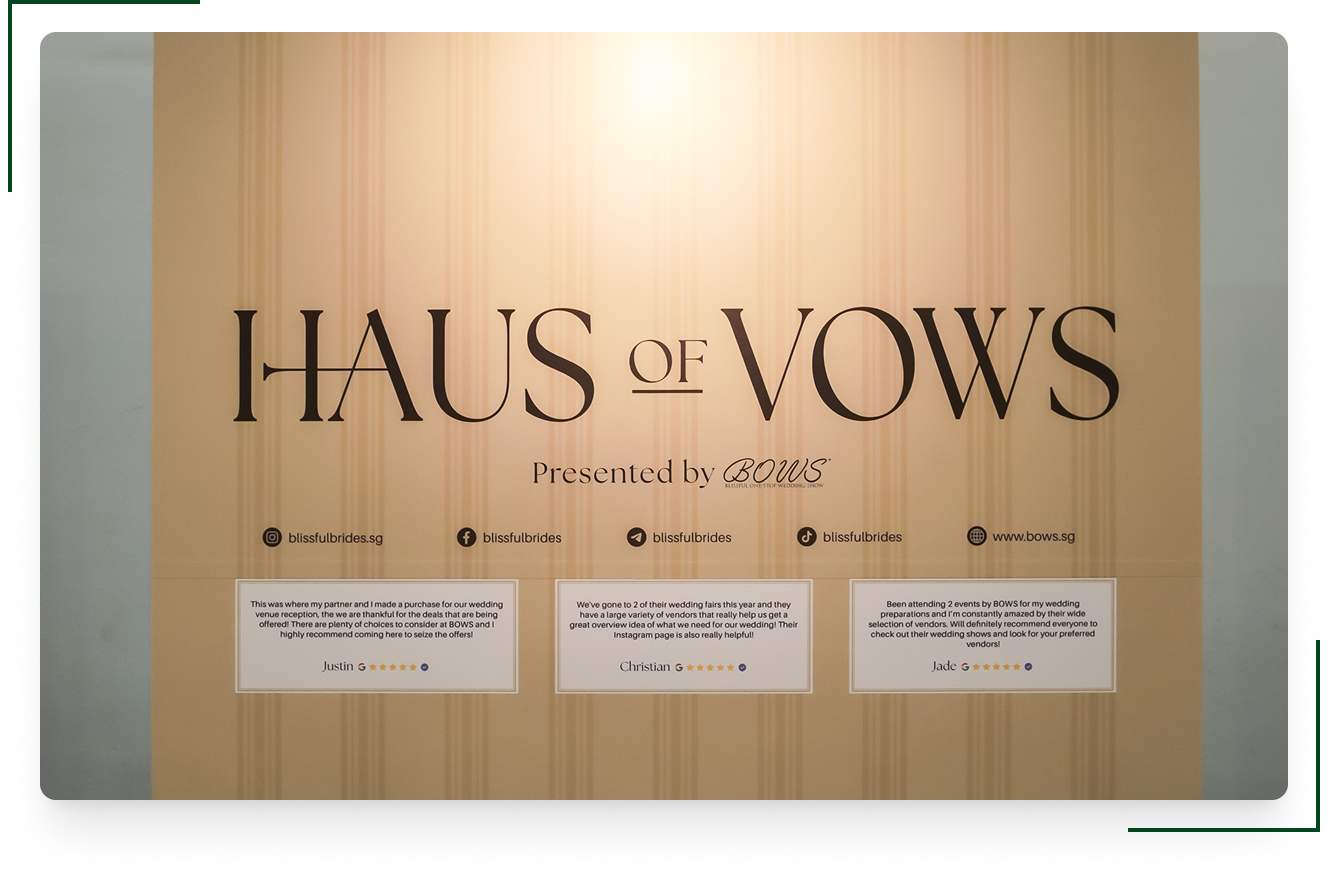 The Blissful One‑Stop Wedding Show (BOWS) is Singapore’s largest and most comprehensive wedding showcase, thoughtfully curated to bring together everything couples need to plan their perfect celebration. Since its debut in 2005, BOWS has grown from a cherished annual event into a dynamic tri‑annual experience that inspires, informs, and rewards couples on their wedding journey.